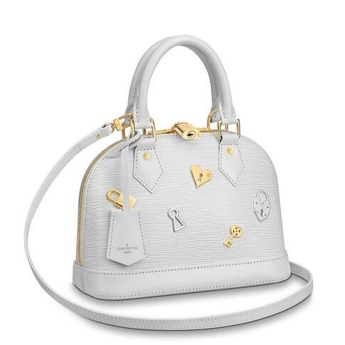 - Epi grained cowhide and metal pins- Smooth cowhide-leather trim- Microfiber lining- Gold-color hardware- 2 Toron handles for hand carry- Removable strap for shoulder or cross-body carry- Double-zip closure- Padlock and keybell- Flat inside pocketSize: 9.2 x 6.9 x 4.3 inchesComes with Louis Vuitton serial number, dust bag and authenticity card.