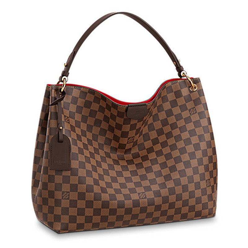 The spacious Graceful hobo has a lightweight, body-friendly design that makes it perfect for every day. The flat handle sits easily on the shoulder, while emblematic details, such as the leather name tag, reference Louis Vuitton's travel heritage.