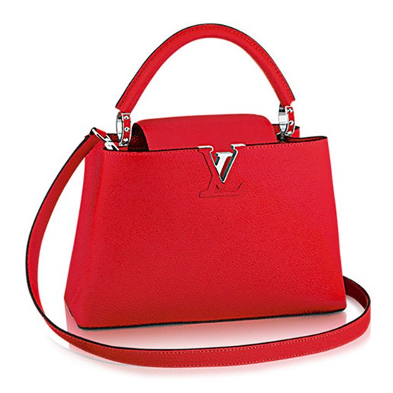 The fashionable mini size of Capucines PM lends an intense pop of contrasting colors to wardrobe styles from classic to daring. Finished with shiny color accents, the Capucines PM comes with a removable shoulder strap for casual shoulder or cross-body wear.