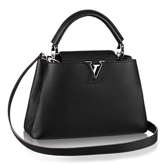 Description:The fashionable mini size of Capucines PM lends anintense pop of contrasting colors to wardrobe styles from classic to daring.Finished with shiny color accents, the Capucines PM comes with a removableshoulder strap for casual shoulder or cross-body wear.Size: 12.2 x 7.9 x 4.3 inches / 31cm x 20cmx 11cm (Length x Height x Width) DetailedFeatures:- Full-grain Taurillon leather- Handle for arm or hand carry, removable strapfor shoulder or cross-body carry.- Snap hook closure- 2 large compartments- 1 flat pocket, 1 zipped pocket- Protective bottom studsCome withlouis vuitton original paper shopping bag, yellow dust bag,authenticity card, tag.