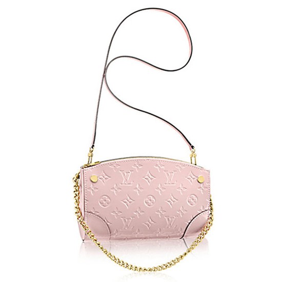 As its name suggests, this bag is bound to be a favorite with fashionistas. The new Santa Monica Clutch in embossed Monogram Vernis patent calf leather does double uses as a city bag or evening pochette. Attached to the long leather strap, it's a cross-body for hands-free wear; remove the strap for a day-to-night style: a chain-handled shoulder bag. Refined heritage details-flat leather corners, gold-toned nail heads-subtly evoke historic Vuitton trunks.