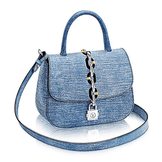 Inspired by the architectural spirit of the show, the Chain-it bag features sleek lines and flawless design. Statement chain embellishment, with characteristic nautical inspired design, reminds of Louis Vuitton's travel DNA, while its bold and smart closing system unveils a central button with LV circle signature. Seen on the runway, this exclusive shape is set to become one of the most exciting pieces of the season. Effortless Epi offers a summery option on this model.