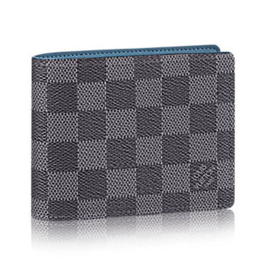 The Multiple Wallet is ideal to hold credit cards, bills and receipts in a very compact format. The smart mix between Damier Graphite canvas and colored leather lining adds an extra veneer of sophistication.